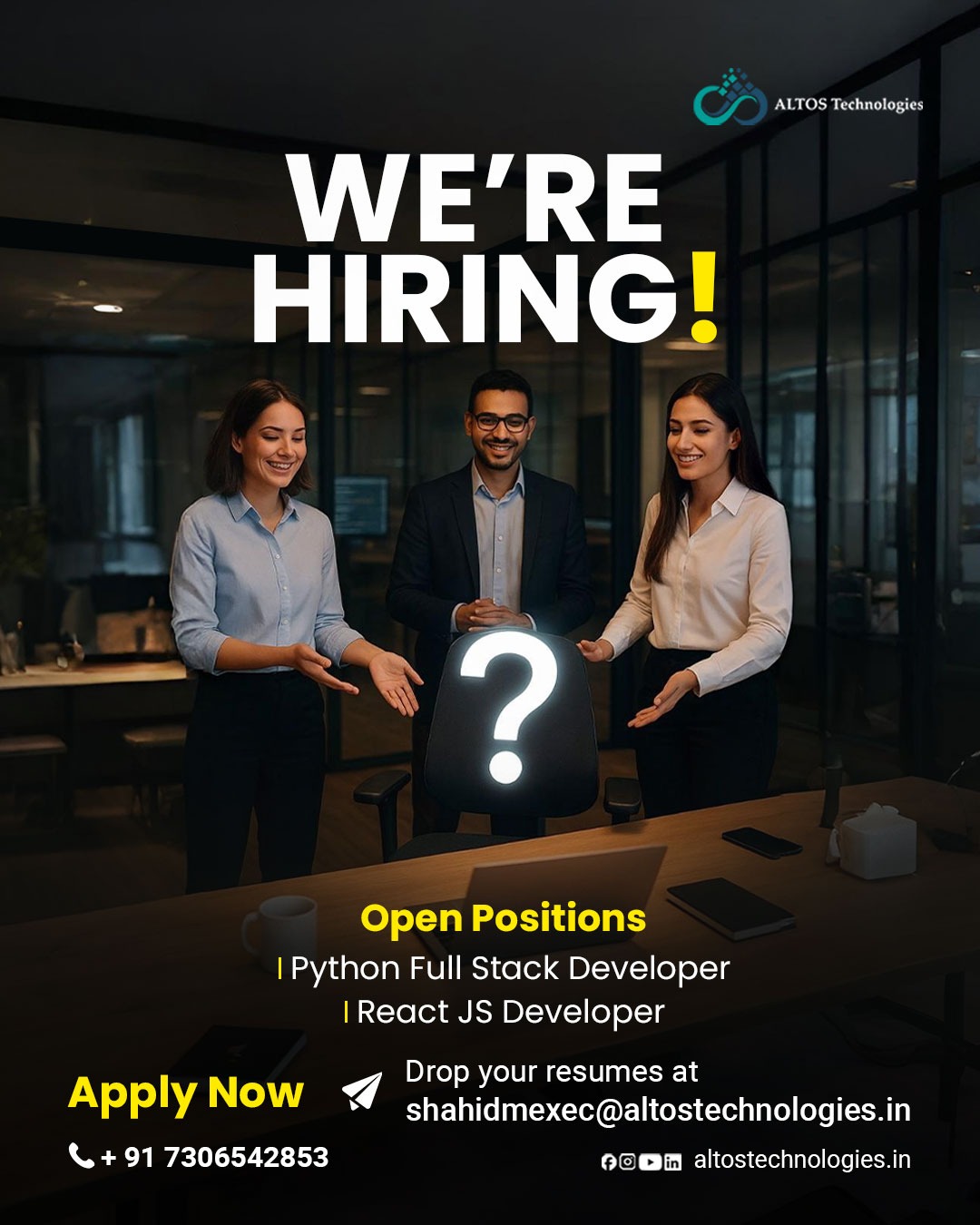 Are you ready to kickstart your career with a dynamic tech team? Altos Technologies is looking for passionate and skilled professionals to join our growing family. If you’re someone who loves coding, innovation, and continuous learning — we’d love to hear from you!